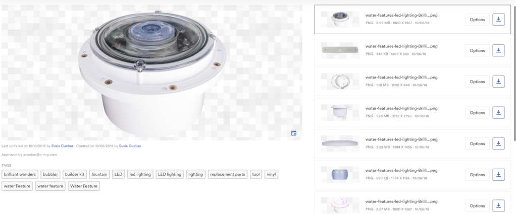 Chaque ressource peut contenir de nombreuses versions différentes. Vous pouvez trouver la bonne version d’un logo dont vous pourriez avoir besoin, ou pour certaines images trouver des vues sous différents angles ou des accessoires de produits.