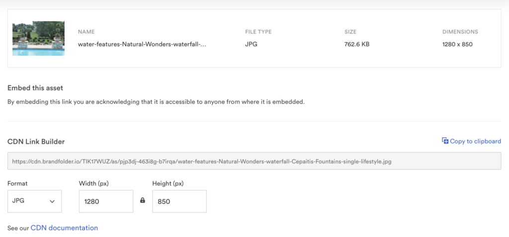 Si activé pour la ressource, vous pouvez partager et lier directement aux ressources. C’est un excellent moyen d’ajouter une image ou une vidéo aux médias sociaux ou à un site Web. Personnalisez même la taille et le type de fichier lorsque vous partagez ou intégrez la ressource.