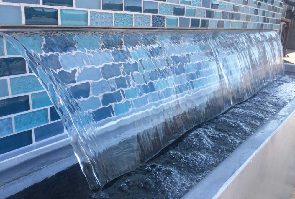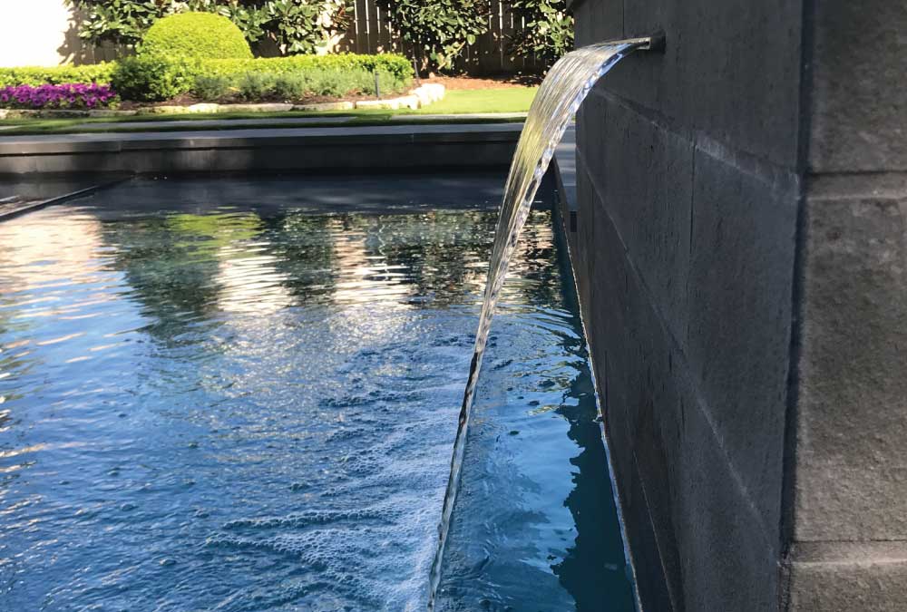 Les chutes d’eau disparaissent dans le mur et créent une nappe d’eau. Alors que les dalots sont conçus pour être considérés comme un élément de design, disponible dans une variété de styles.