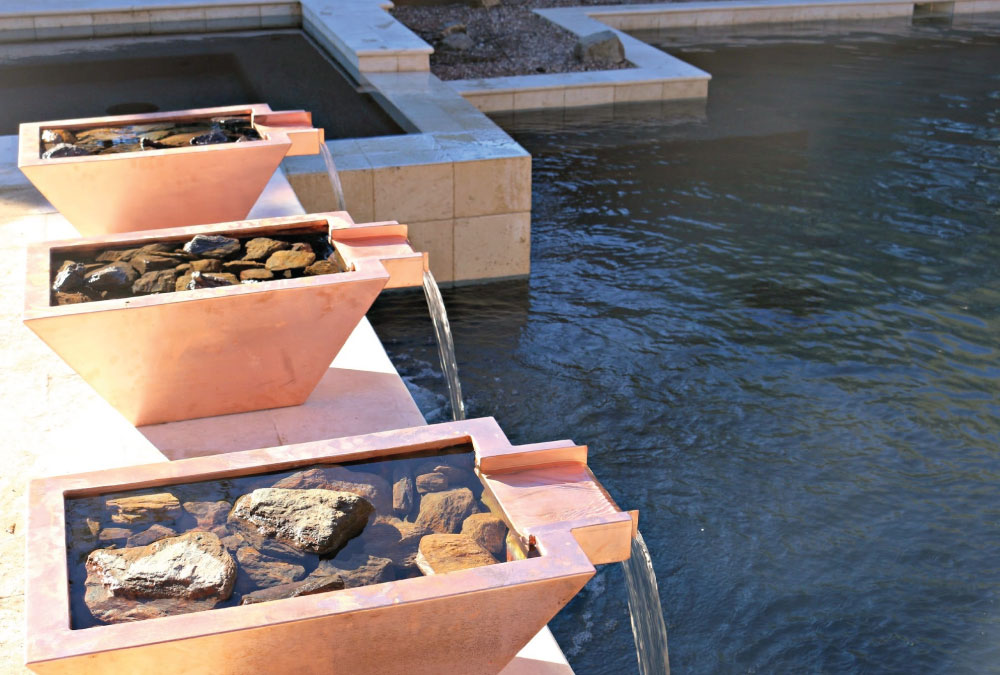 Leur nature même permet aux bols d’eau de faire partie du paysage. Assis au sommet d’une colonne ou juste au bord de la piscine, ils offrent une flexibilité dans tous vos aménagements extérieurs. Remplissez cet élément avec de la pierre ou du verre concassé pour un effet accrocheur, ou laissez-le simplement être pour créer une piscine d’eau naturelle.