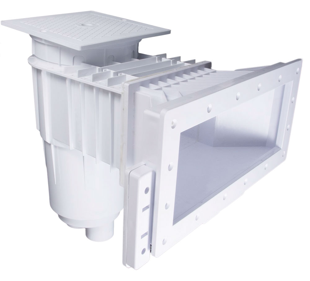Vinyl Pool Skimmer Builder Pack Wide Kit Includes: 1 Wide ABS Skimmer, 1 Extension Collar, 1 Square Cover, 2 Galaxy 2" Main Drains, Eyeball Fittings, 1.5" FPT I/O Fittings |