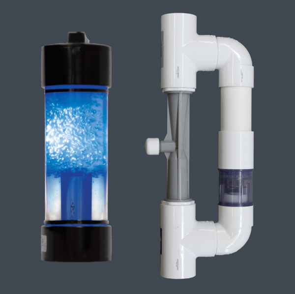Un MDV peut également être utilisé pour empêcher toutes les bulles d’ozone de retourner dans la piscine. Le MDV empêchera les bulles de s’accumuler sous le couvercle ou à l’intérieur de la plomberie. Dans chaque MDV, une cartouche de destruction de carbone GAC détruit l’excès d’ozone au fur et à mesure qu’il est éliminé pour éliminer tout ozone résiduel.