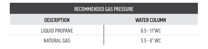Gas Pressure Requirements