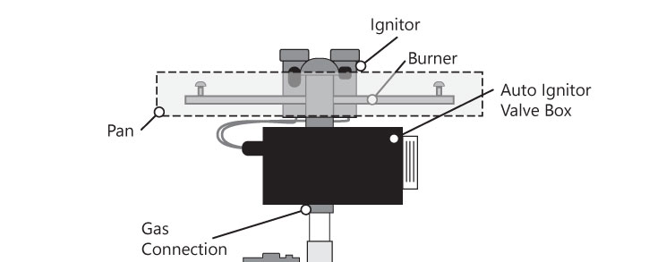 - Replace the burner/pan assembly and turn gas to the system back ON