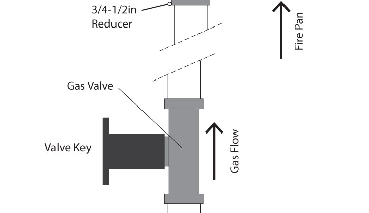 Install 3/4” to 1/2” reducer to the bottom of the burner on the underside of the pan
