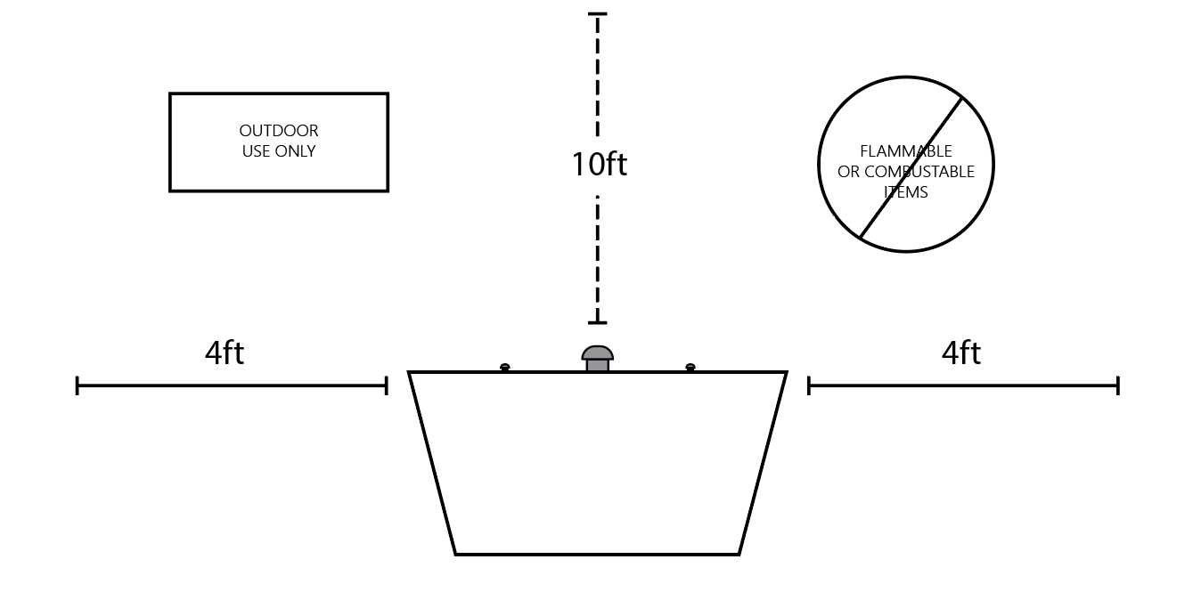 - No combustible structure should be above the fire feature. No more than two side structures should be around the fire feature.
