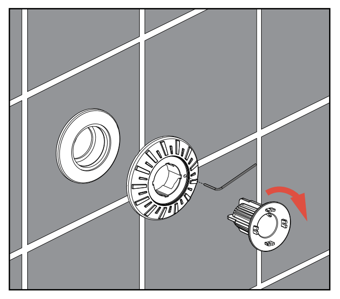 Tighten the included set screw using a 2mm Allen wrench. (Faceplate fitting only)