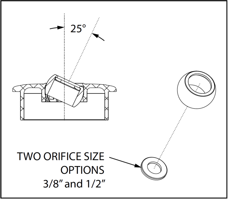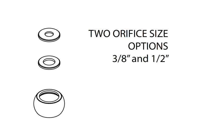 • A smaller orifice opening (3/8″) will have higher water pressure and plume height