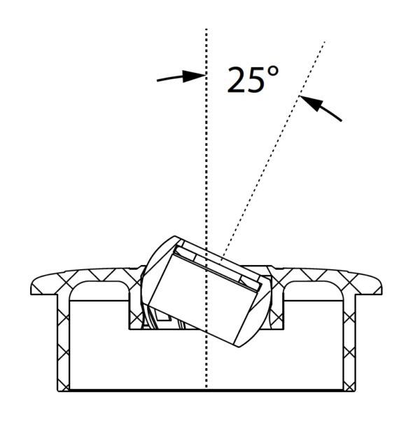 The adjustable Eyeball can be angled up to 25° from a vertical position.