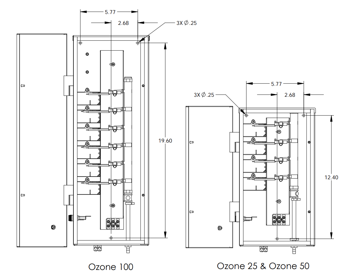Open the Enclosure Door and locate the three mounting holes on the back wall of the Enclosure.