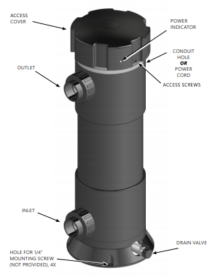 The UV-C 50 includes two germicidal UV lamps tuned to 254nm, and is safe and harmless to your equipment and bathers when installed properly.