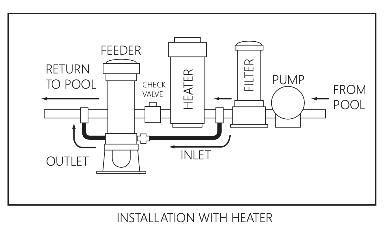 Install after the filter, pool cleaner, diverter valves, heater (if installed) and any other installed equipment to prevent damage.