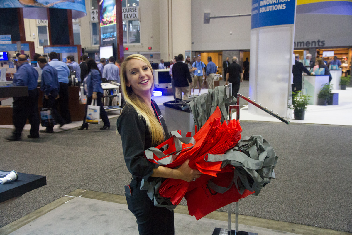 - Our Marketing Coordinator restocking the CMP promotional bags at IPSPE 2014.