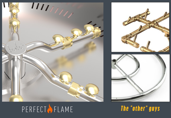 A Perfect Flame Burner is custom engineered for an amazing flame. Competing burners are just some tubing with holes drilled in.