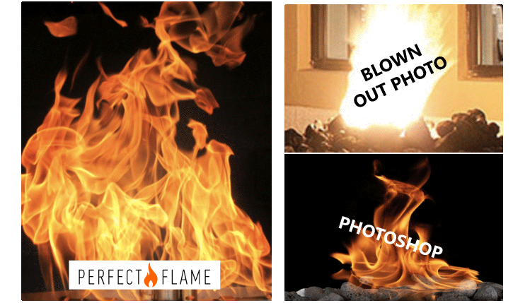 All Bobé fire feature photos are 100% real flame and we strive for an accurate representation of the real flame with as little overexposure as possible.