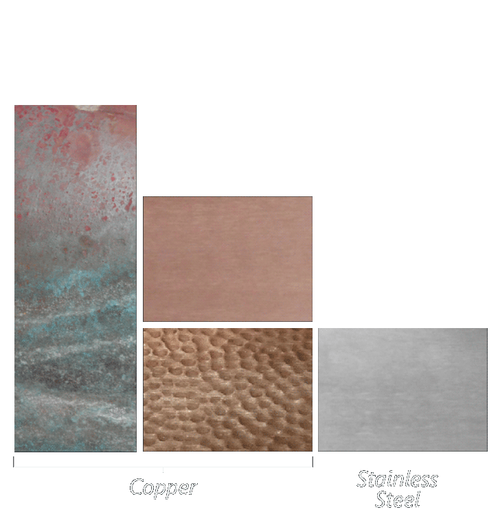 Heavy-grade copper or stainless steel. And powder coating available by special order.