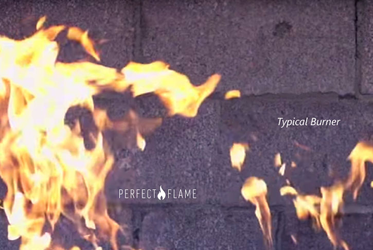 A flame that burns bigger with a more natural fire look–like a camp fire–instead of creating a ring of fire like a stove-top.